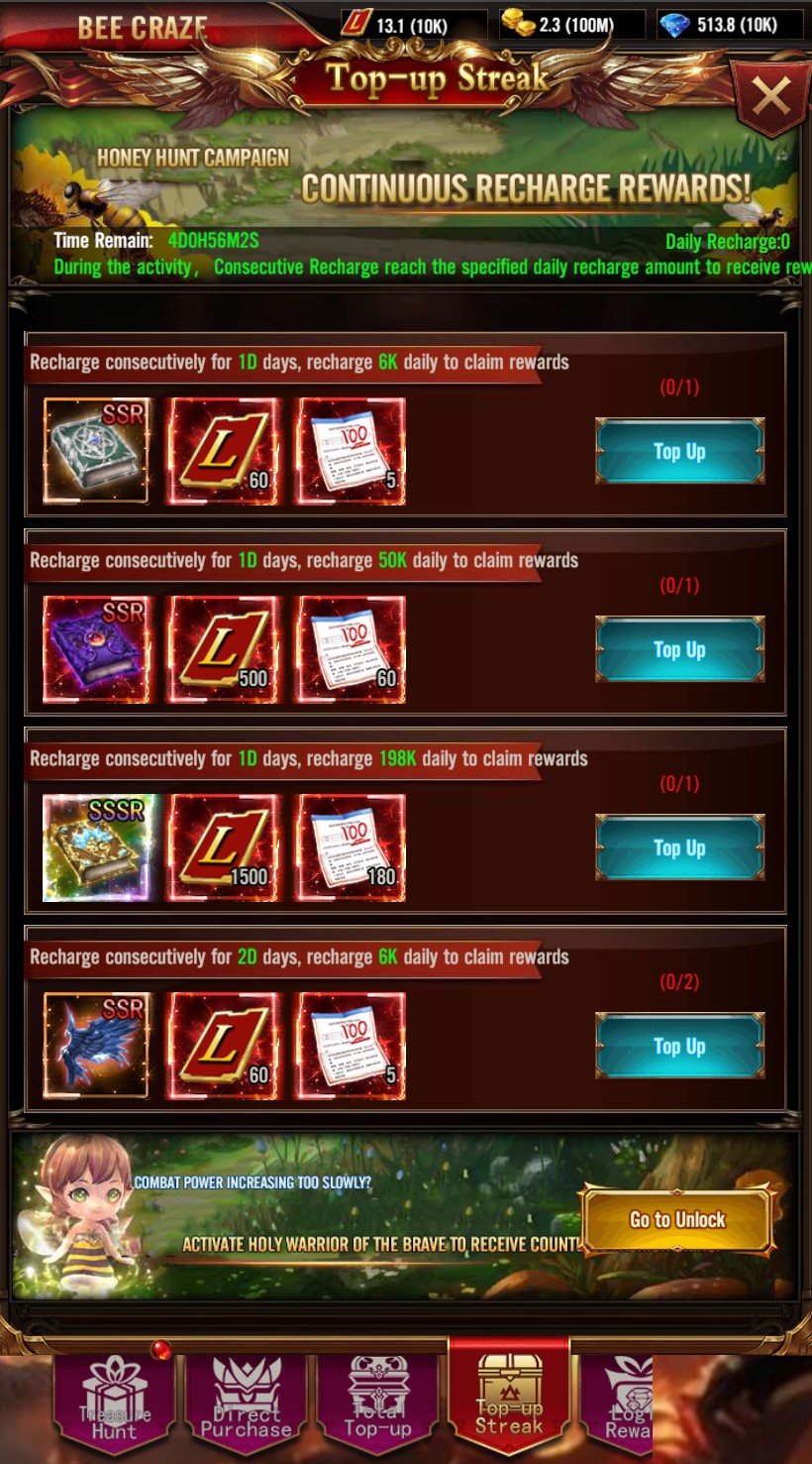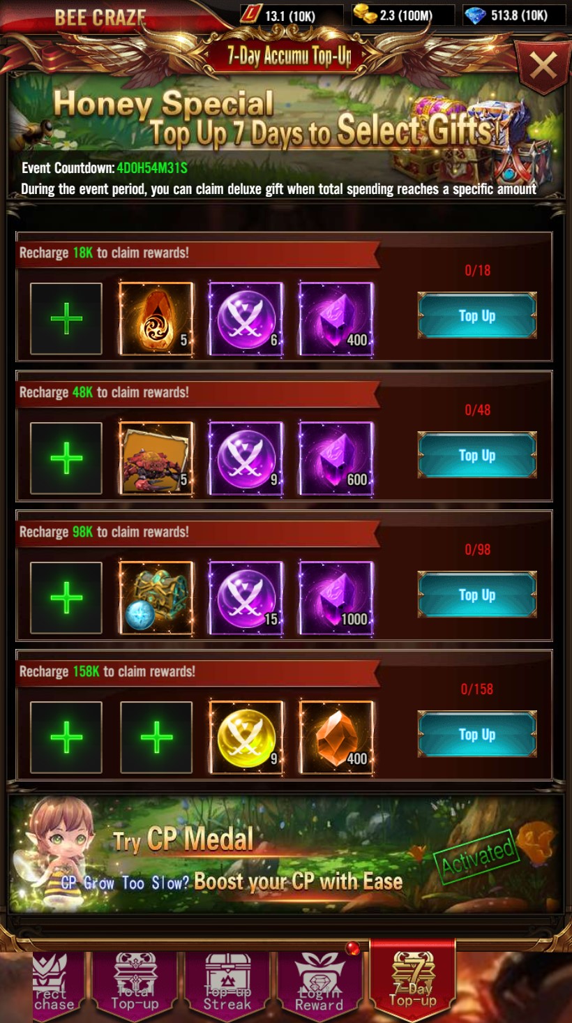 Accumulated Recharge: Reach the accumulated recharge amount to receive valuable and attractive rewards.