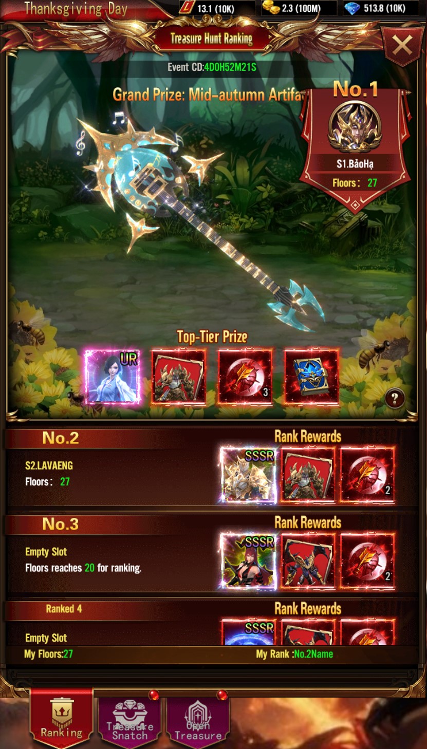 Top Card Flip Race: Compete in the top card flip race to win extremely valuable and attractive prizes exclusive to the treasure hunt event.