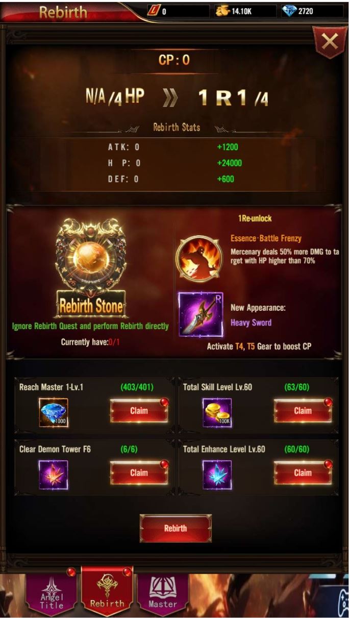 2. Use Rebirth Stone to rebirth immediately. (Details to be updated later)