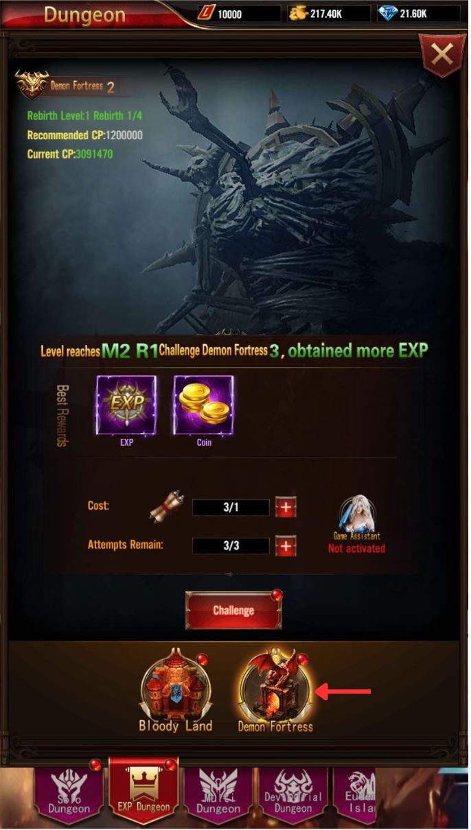 The first dungeon you will experience is the Demon Tower. Numerous divine points and treasure tickets are waiting for you.